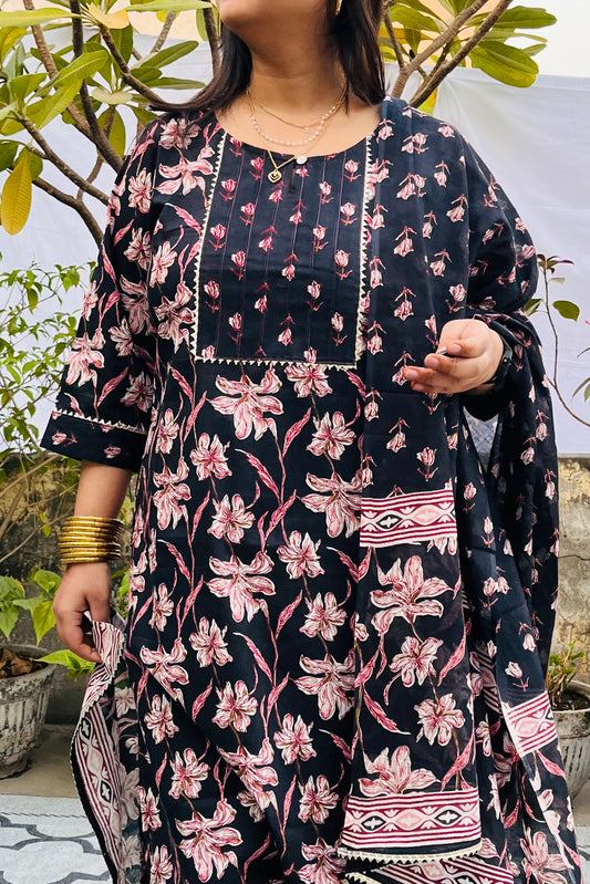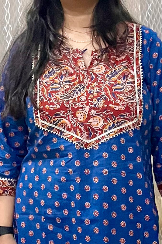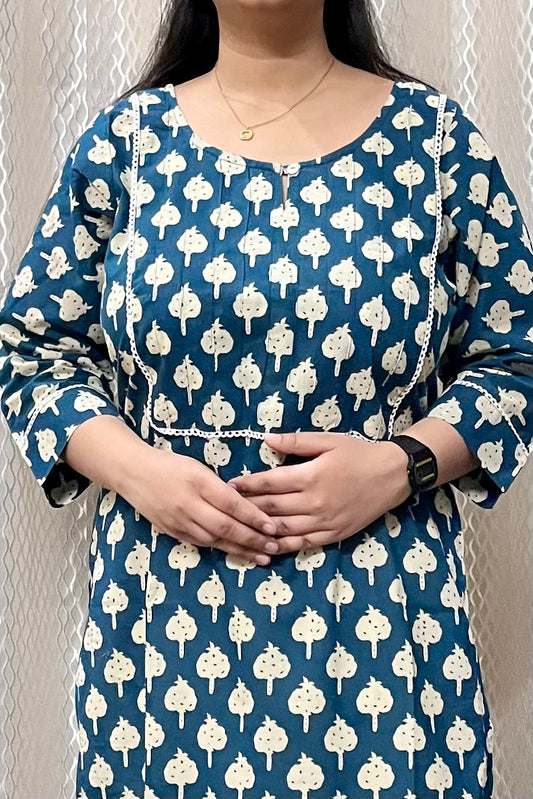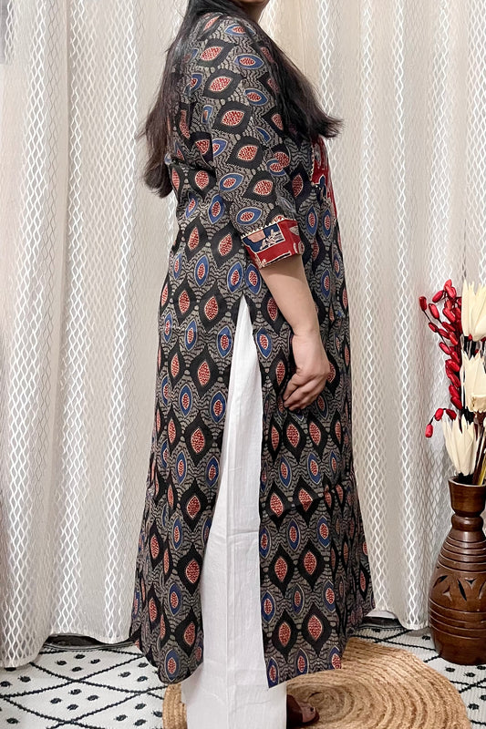 BLACK-BLUE HANDBLOCK PRINT KURTA