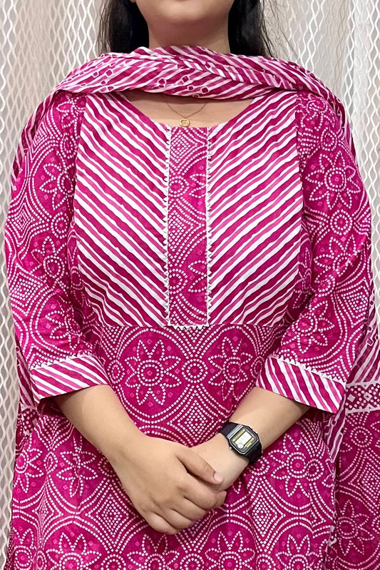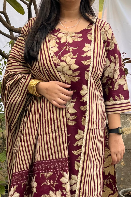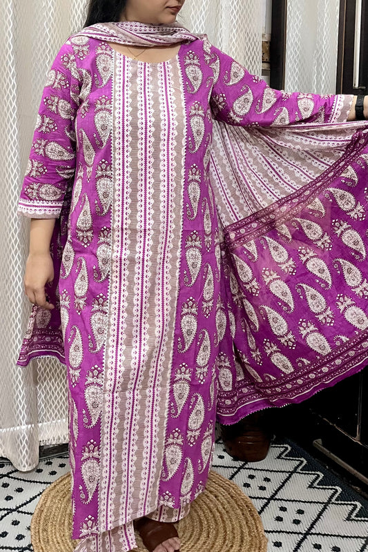 PURPLE SUIT SET WITH MULMUL DUPATTA
