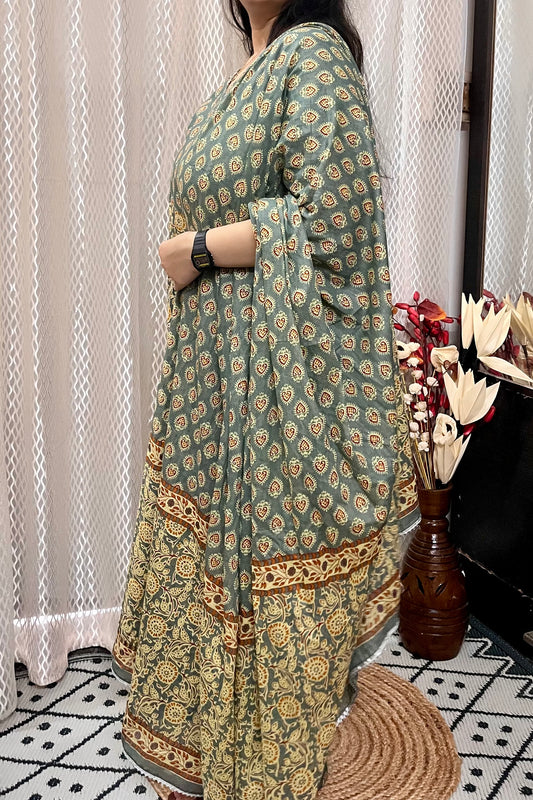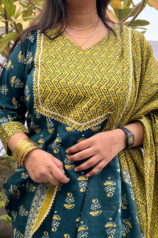 GREEN SUIT SET WITH MULMUL DUPATTA